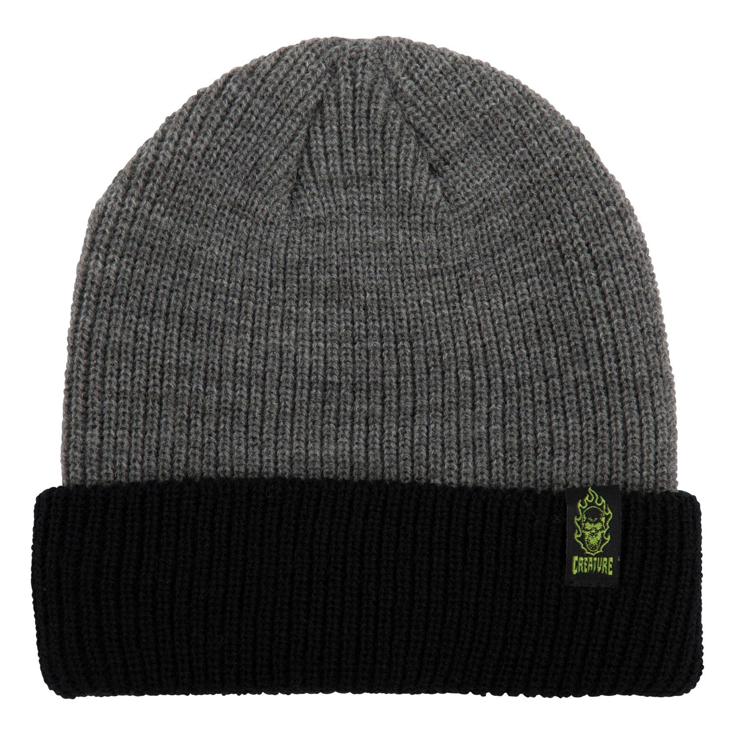 Support the horde with the latest apparel and accessories from Creature Skateboards. The Creature Bonehead Label unisex fit long shoreman beanie features rib knit, contrast fold-over vertical woven label. Product Features