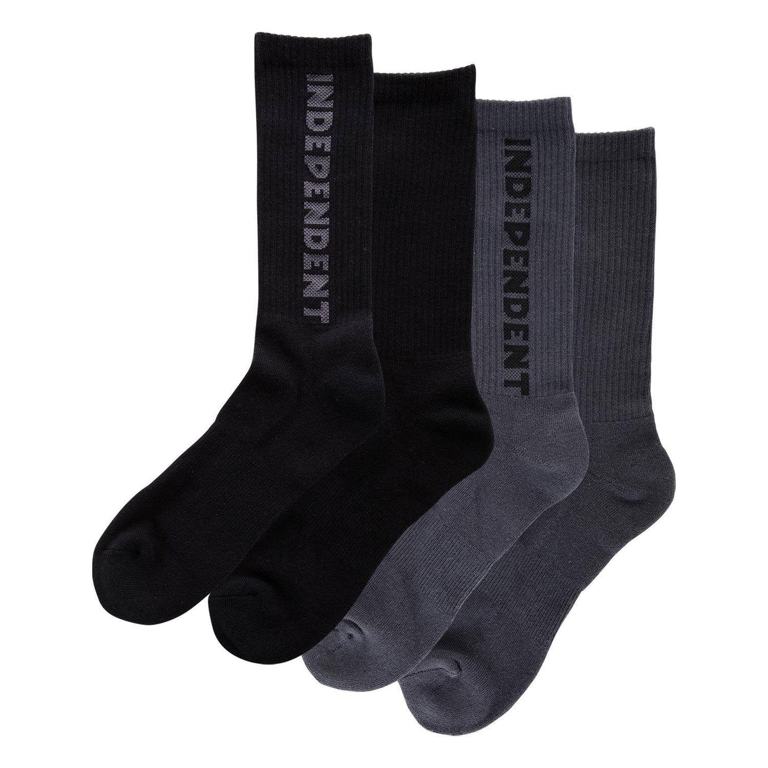 <p>Ride the best and rep the best with the latest Independent Trucks apparel and accessories.</p><p>The Independent Baseline 2-Pack Crew Socks Black/Charcoal men's mid crew socks features arch support ribbing and knit-in Independent logo at ribbing. 2 pairs of socks: 1 black and 1 charcoal.</p><p> </p><p>Product Features</p>Men's mid crew socks 2 pairs of socks: 1 pair black / 1 pair charcoal.Arch support ribbingIndependent logo at ribbing75% Cotton/17% Polyester/8% Spandex<p>Independent Trucks - Built to Grind.</p><p></p>