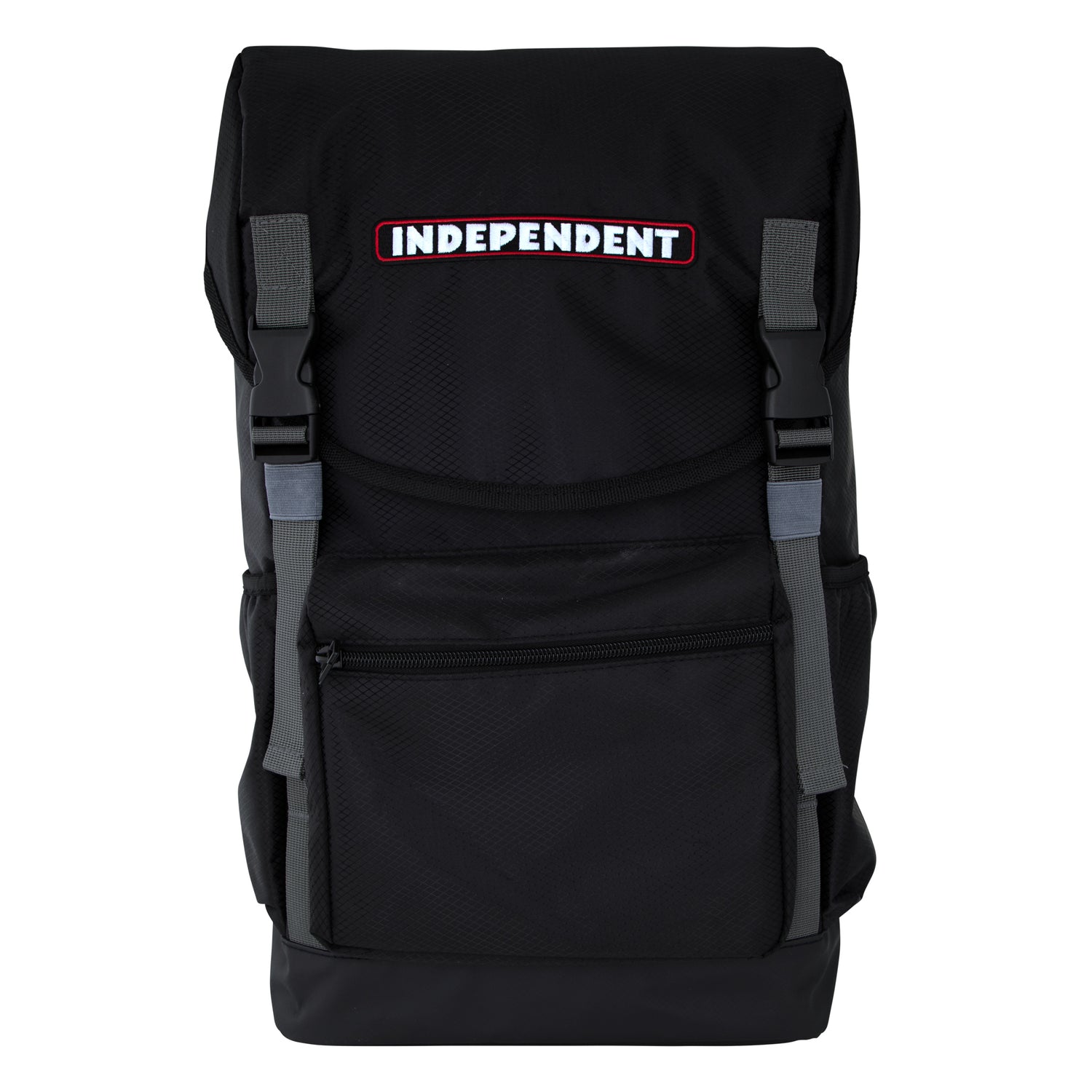 Ride the best and wear the best in the latest apparel and accessories from Independent Trucks. The Independent BTG Service backpack features diamond ripstop body, durable PVC bottom, padded diamond quilted back, adjustable cinched main compartment with flap secured with dual clips and webbing loops, front exterior pocket with detachable key chain, interior padded sleeves, side pockets with elastic, top handle opening with adjustable straps, printed lining, custom woven labels and embroidered logos.
